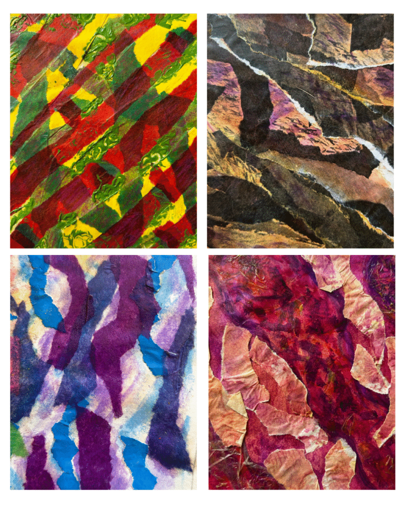 - Being inventive with basic art materials such as wax crayons and oil pastels